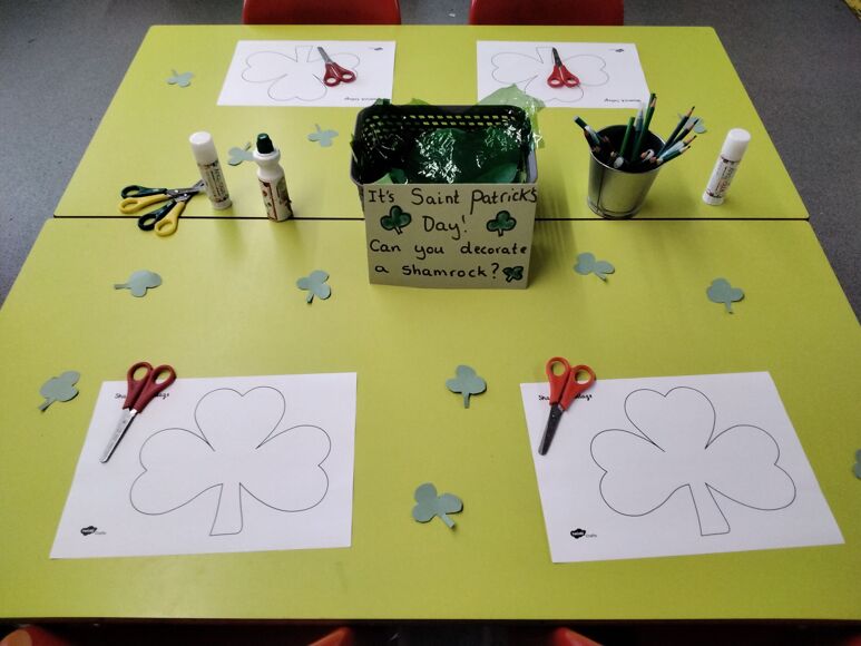 Children of St Patrick's House dressed in green, and Robin Class enjoyed doing some green crafts