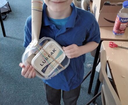 The children were challenged to make musical instruments out of items for recycling. Lots of great designs and some very interesting sounds!